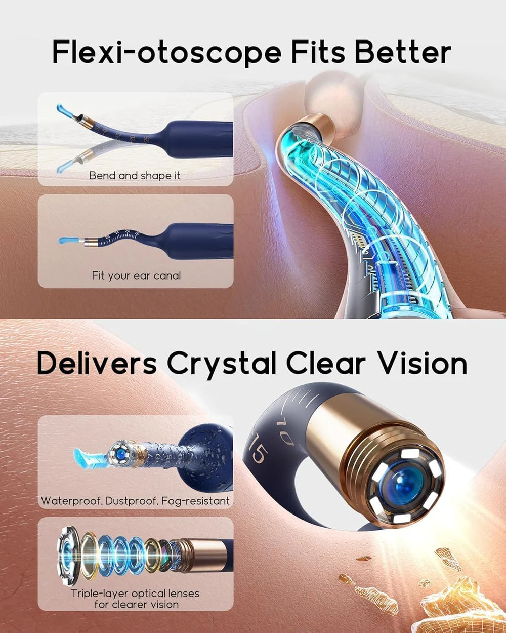 The HD camera provides a clear view of the ear canal, making it safer and more effective than traditional methods.